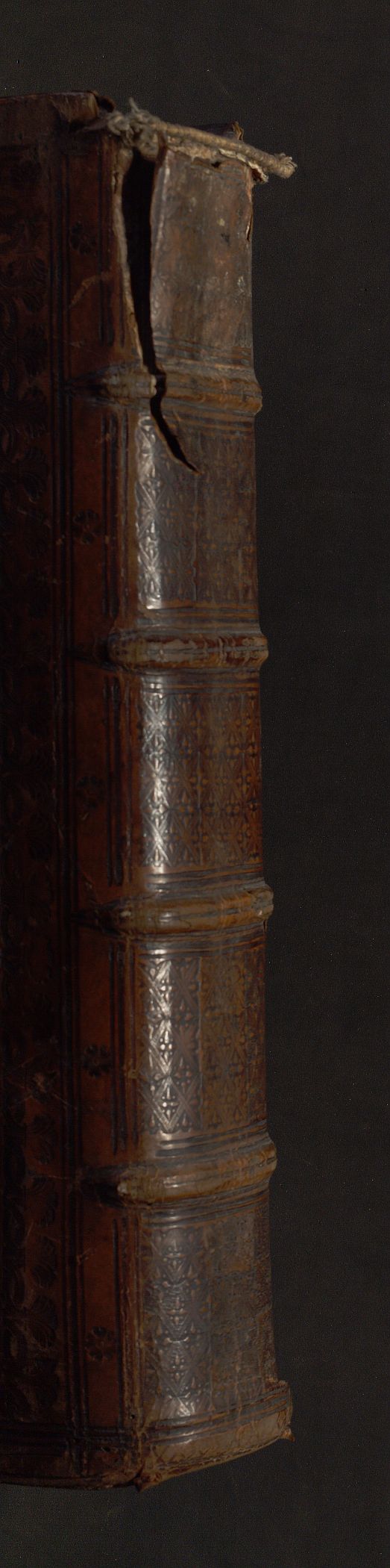 | Stan | Stan oprawy: okładziny drewniane obleczone brązową skórą, ślady żerowania owadów na desce i wyklejce, ubytki materiału obleczeniowego na narożnikach, skóra pęknieta na grzbiecie i spękana, ślady rdzy na wewnętrznych stronach okładzin oraz na wyklejkach. Stan bloku książki: szycie w dobrym stanie, deformacja bloku (wgłebienia papieru). Stan kart papieru: drobne zaplamiena kart, ślady żerowania owadów, drobne zagięcia rogów |